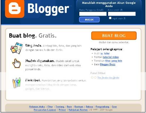 Langkah Pertama : Kunjungi alamat Blogger yaitu : www.blogger.com.